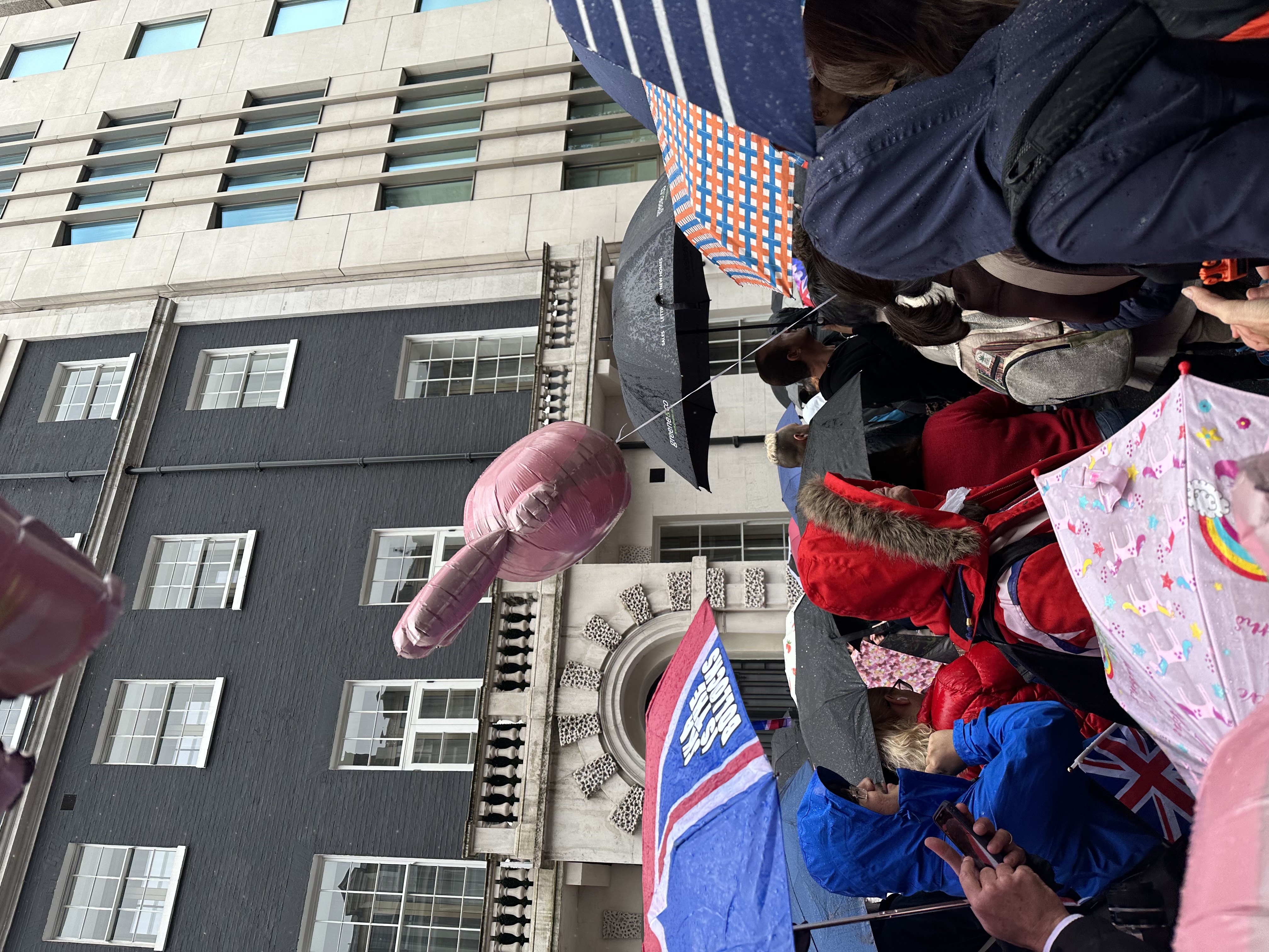 May 6th. King Charlie got coronated. So, we used the most iconic thing about him (his sausage hands) and turned them into 500 balloons. Royalists and anti-royalists stood in Westminster, holding the porky balloons whilst watching the crown get wedged on King Charlies head.